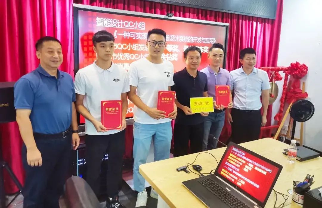 由赵令铵带领的智慧设计QC小组以《一种可实现环保智慧设计系统的开发与应用》为课题参赛,分别斩获年度肇庆市QC小组比赛“一等奖”、“最佳发布奖”和“金钻奖”,同时该课题还参加了广东省级总决赛并获得“南粤之星杯-银奖”。